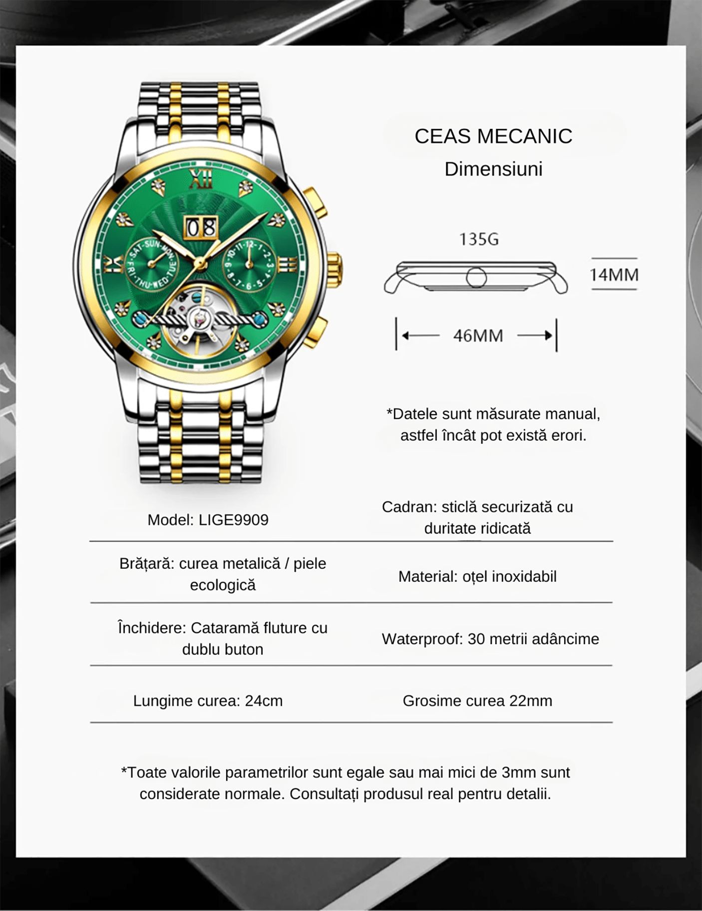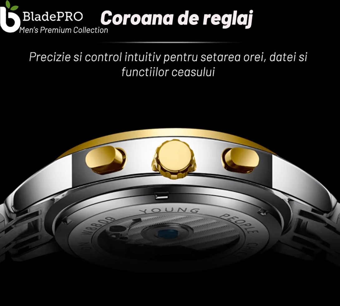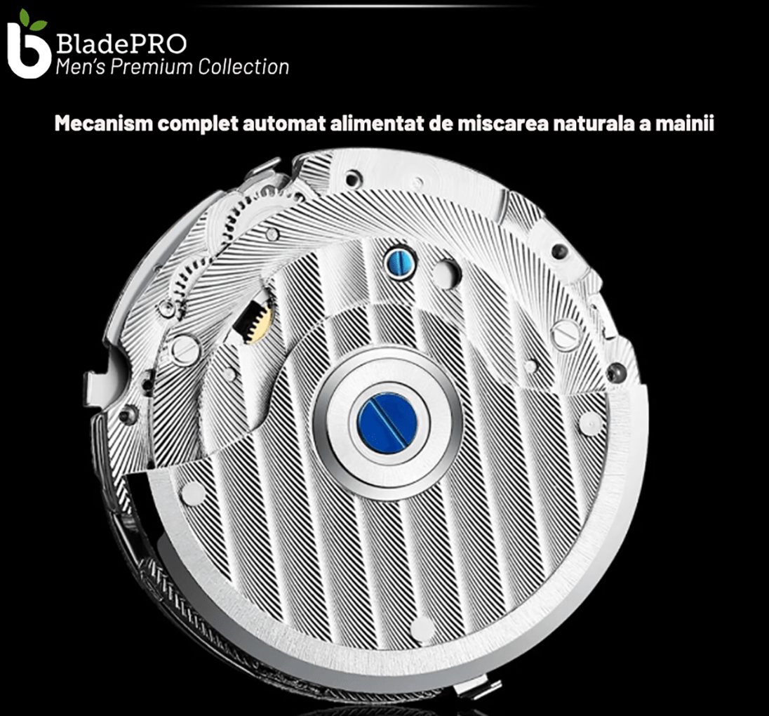 Ceasul mecanic automatic BladePRO Men’s Premium Collection este expresia echilibrului perfect dintre designul luxury si precizia mecanismului clasic. Creat pentru barbatii care apreciaza detaliile rafinate, acest ceas transforma orice tinuta intr-o declaratie de stil.