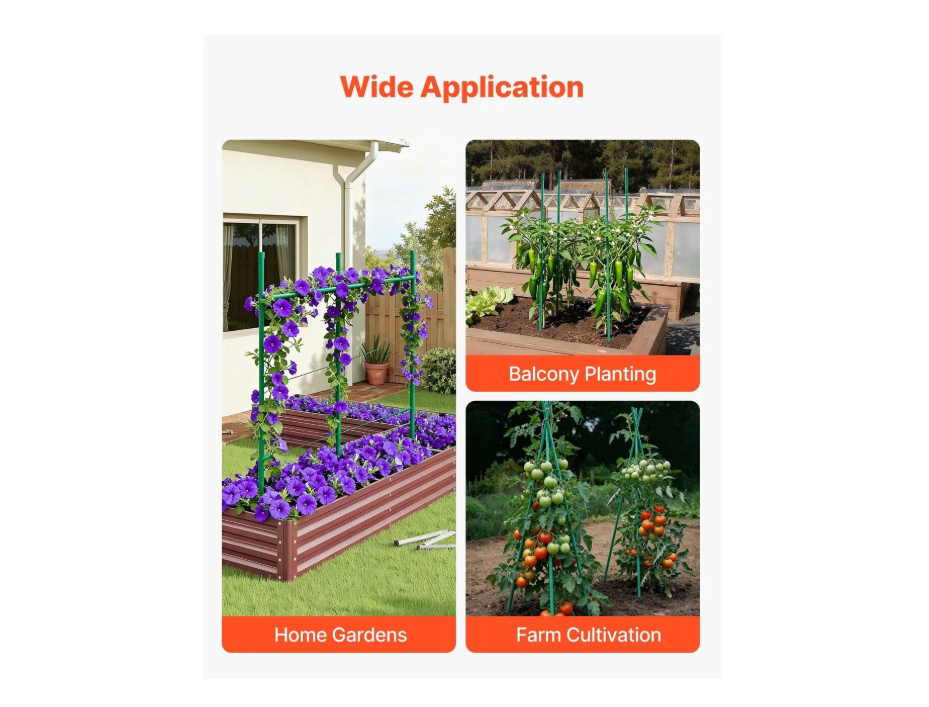Setul de 20 araci de gradina BladePRO®, realizati din metal rezistent acoperit cu PVC, este solutia ideala pentru sustinerea plantelor de gradina si solar: rosii, castraveti, fasole, mazare, ardei sau flori cataratoare.